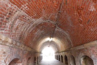 「ねじりまんぽ」は、築堤の下を斜めに交差するトンネルなどで、アーチが垂直に荷重を 受けられるようにレンガを斜め螺旋に積む工法を指す。トンネル内部のレンガは渦を巻くよう に積み上げられており、強度を保つ工夫がされている。