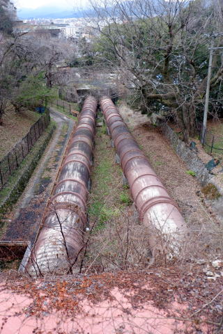 史 蹴上水力発電に送水するための長さ約350mの送水管。