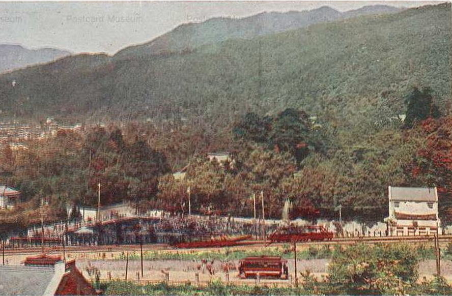 写真は仁王門通を電車が走り、インクラインを舟車が登り、後方に南禅寺プールが見える。